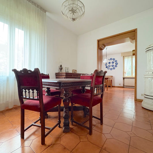 All’ingresso si viene accolti da un portico coperto di circa 25 mq ideale per vivere l’esterno in ogni stagione l’ingresso conduce a un soggiorno accogliente con caminetto una cucina separata uno studio e una stanza lavoro entrambi di ampia metratura facilmente convertibili in camere da letto al piano terra a seconda delle esigenze familiari